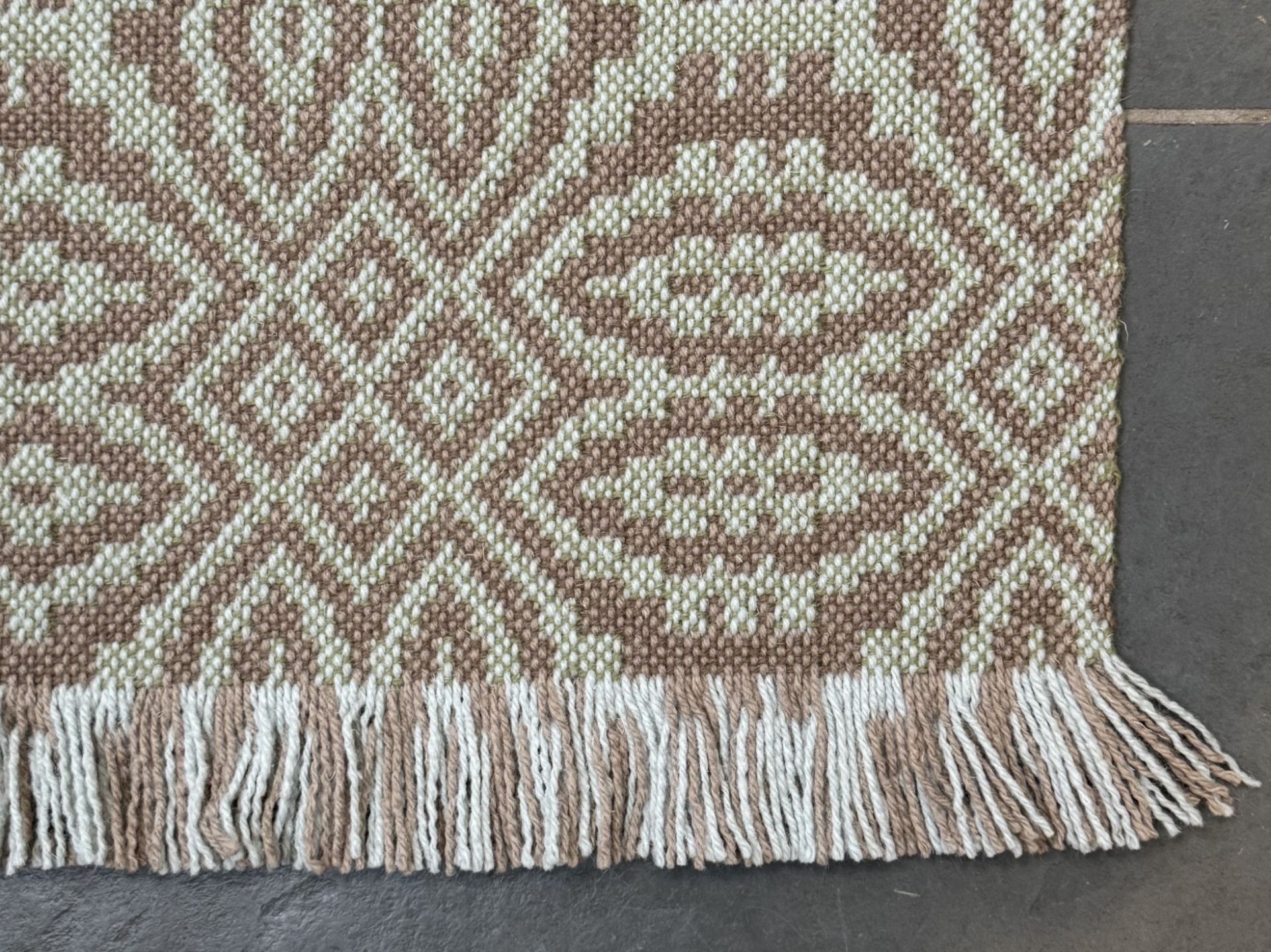 Traditional Welsh Tapestry design floor rug. Flat woven using 100% British Wool.