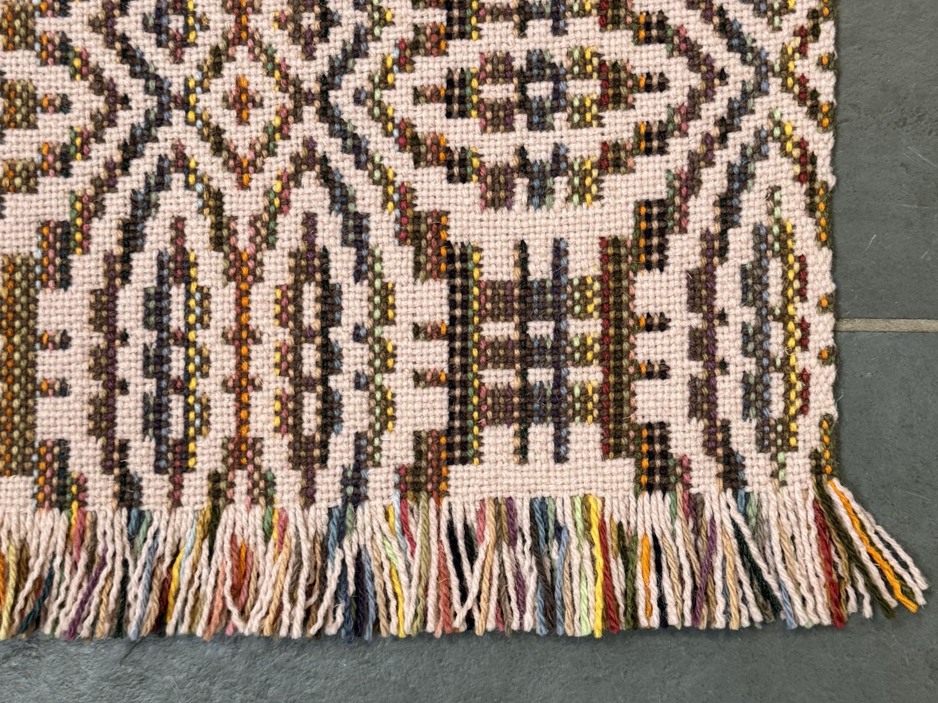 Traditional Welsh Tapestry design floor rug. Flat woven using 100% British Wool.