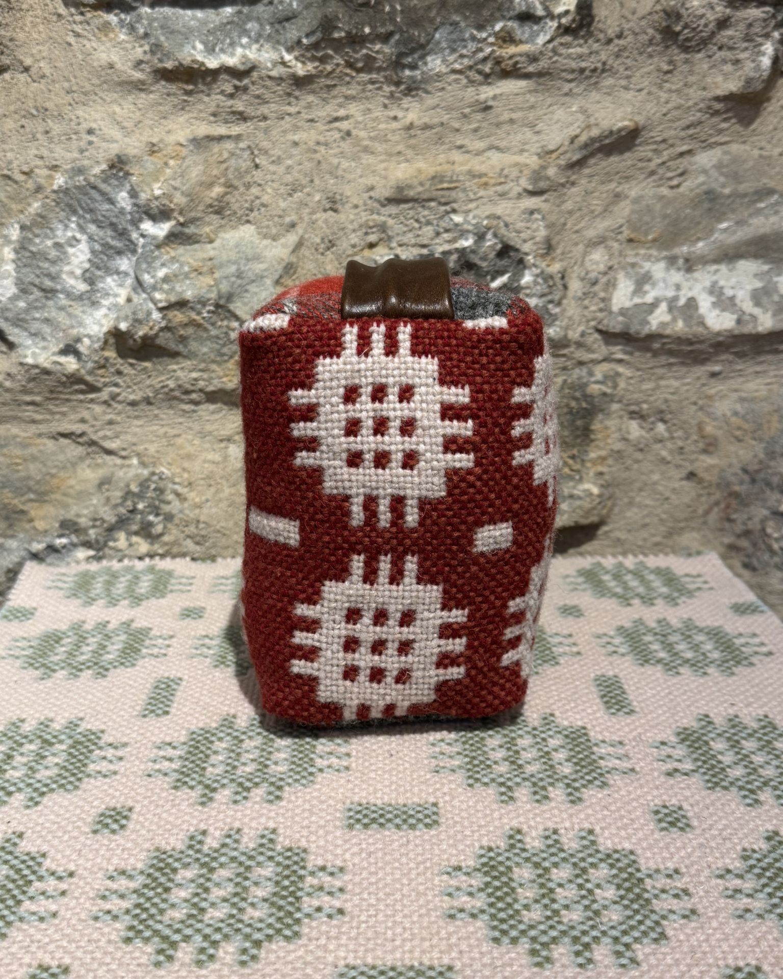 This beautiful doorstop is made using our Berry Red Tapestry rug material.